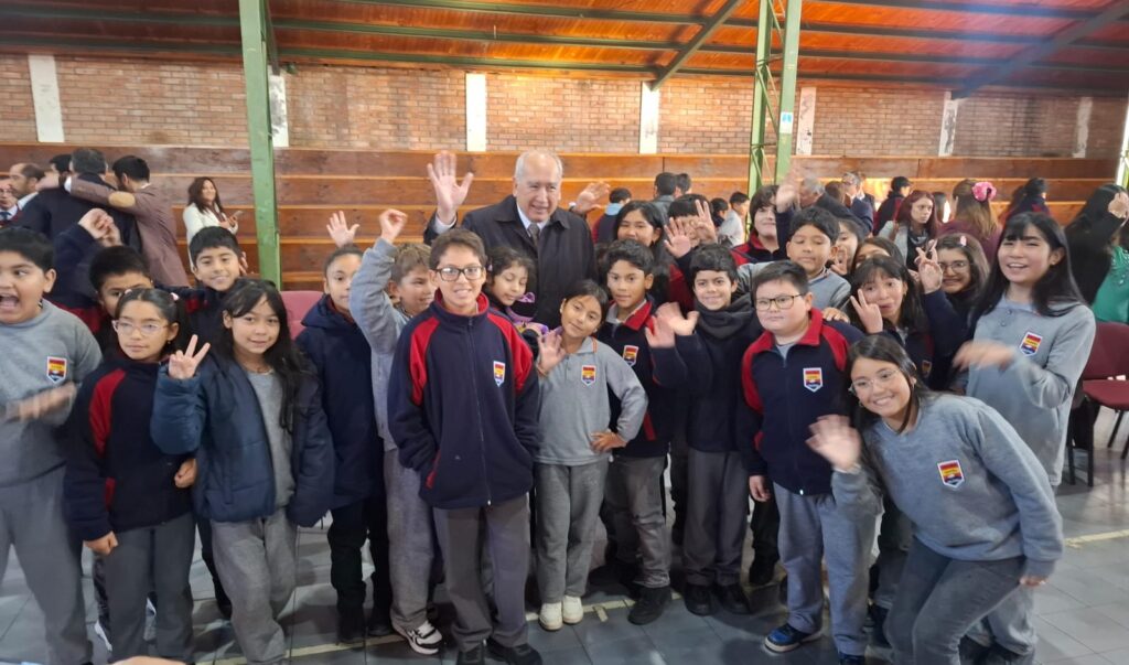 alcalde Jaime Bertin en Escuela España, autoridad que estuvo acompañado por el delegado