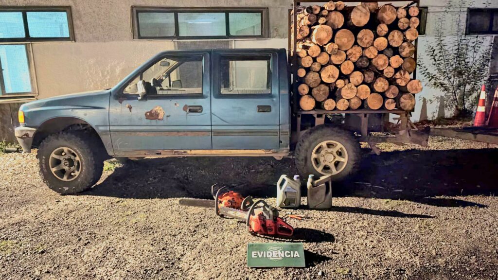 Al inspeccionar la camioneta, los funcionarios constataron que trasladaba aproximadamente cuatro metros de madera de pino sin la documentación correspondiente.